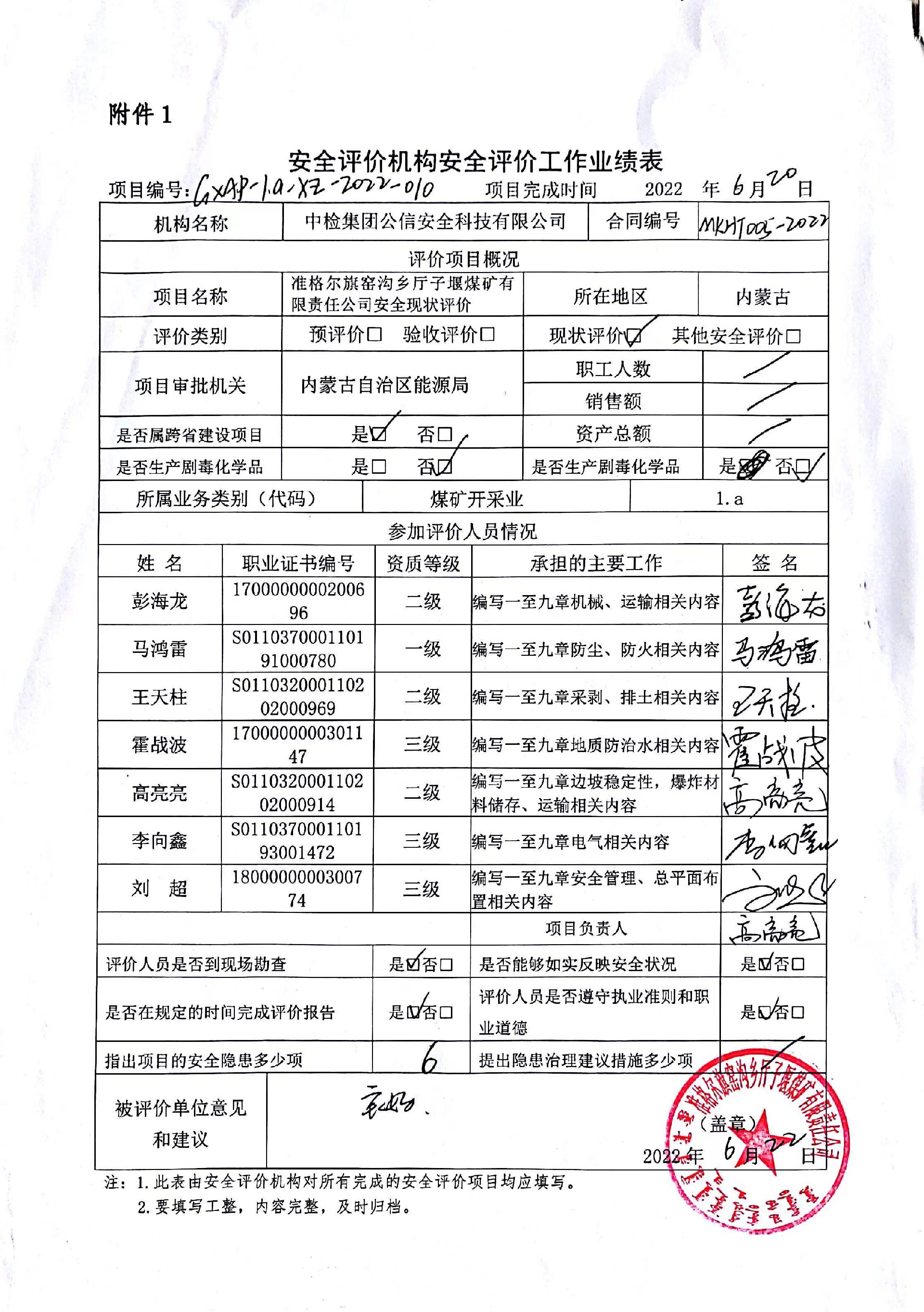 評價項目名稱 | 準(zhǔn)格爾旗窯溝鄉(xiāng)廳子堰煤礦有限責(zé)任公司安全現(xiàn)狀評價 | ||||||