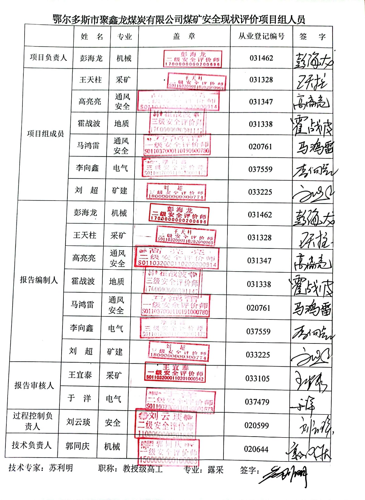 參與安全評價的技術(shù)專家:蘇利明 | |||||||
