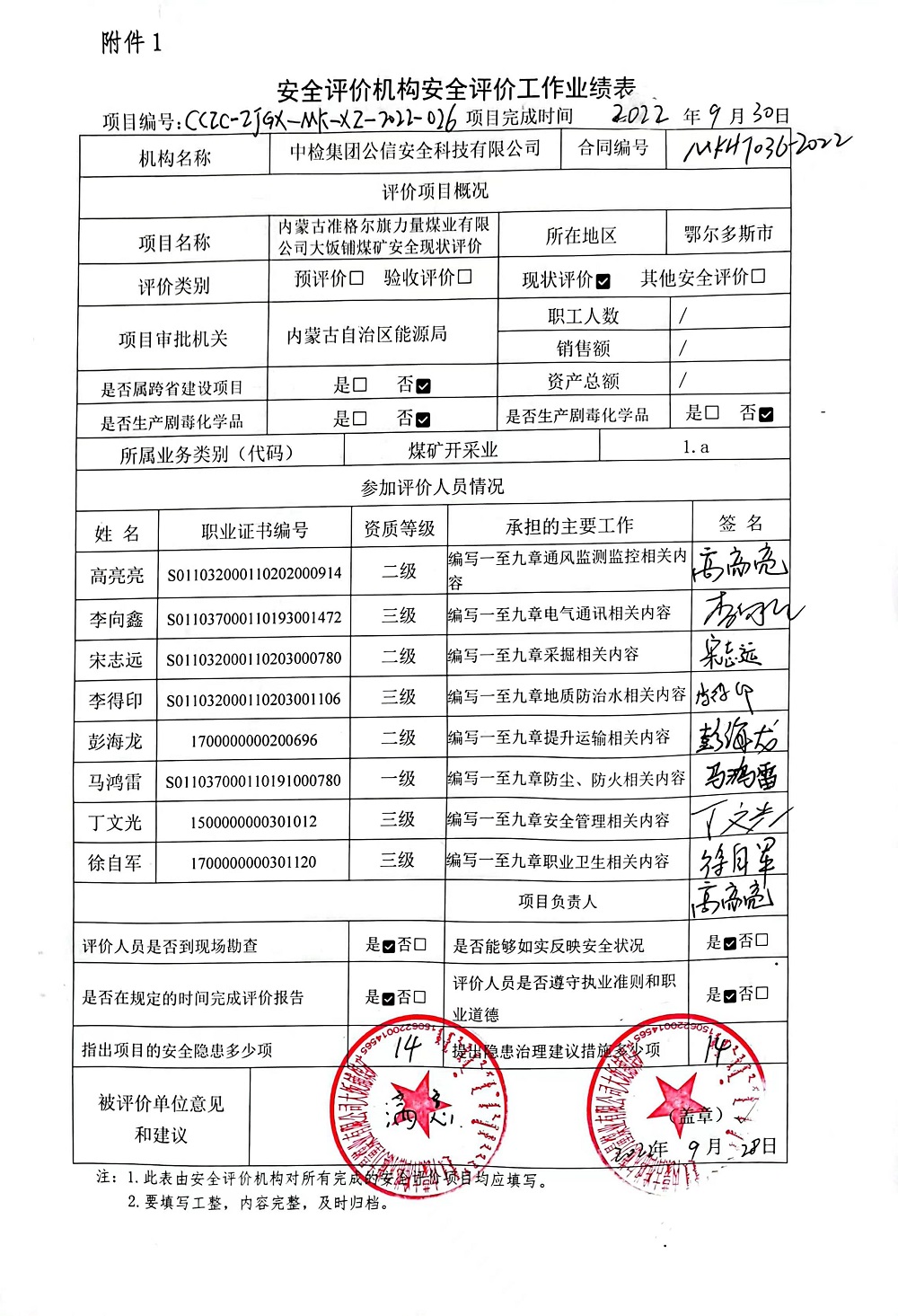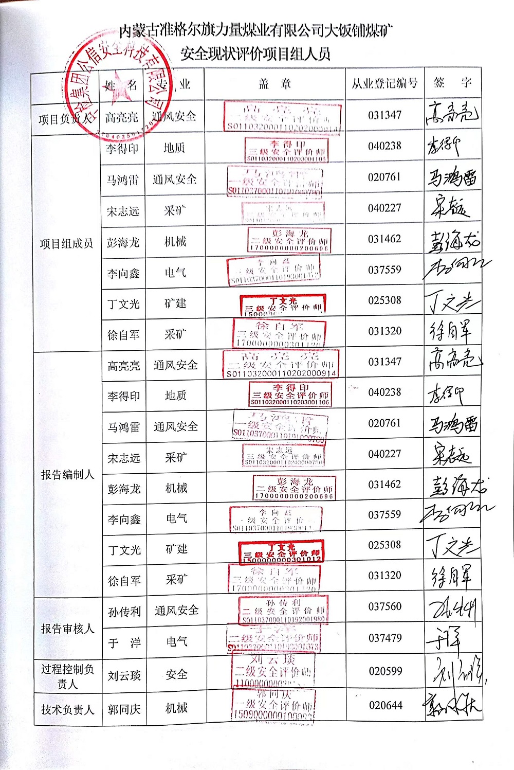 評價(jià)項(xiàng)目名稱 | 內(nèi)蒙古準(zhǔn)格爾旗力量煤業(yè)有限公司大飯鋪煤礦安全現(xiàn)狀評價(jià)報(bào)告 | ||||||