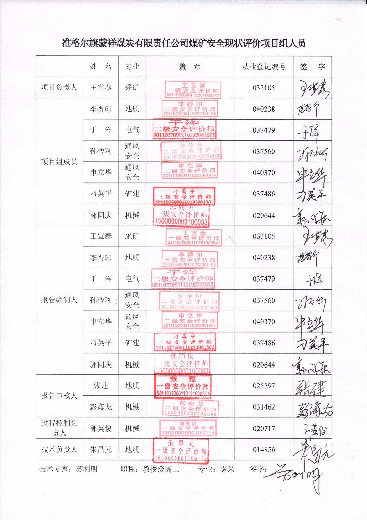 參與安全評價工作的注冊安全工程師: 王宜泰 孫傳利 申立華 郭同慶 | |||||||