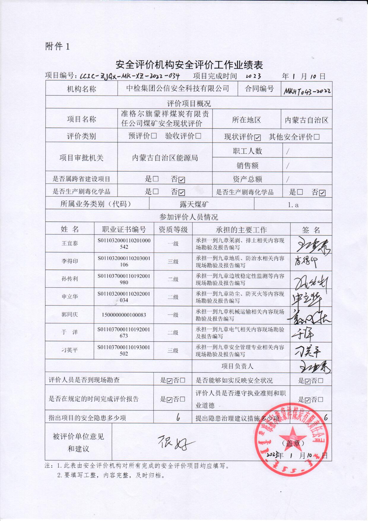現(xiàn)場開展安全評價工作的人員、時間及主要任務(wù): 王宜泰 孫傳利 申立華 郭同慶 于 洋 李得印 刁英平 于2022年12月23日到現(xiàn)場進(jìn)行調(diào)查、搜集資料,進(jìn)行現(xiàn)場評價。 王宜泰 申立華 于2022年12月27日到現(xiàn)場評價時存在的問題進(jìn)行了復(fù)查。 | |||||||