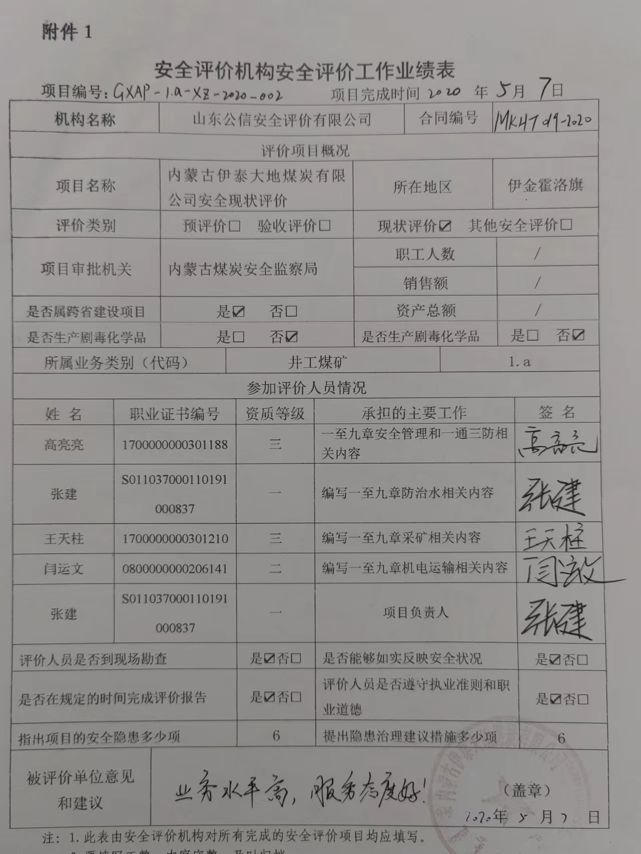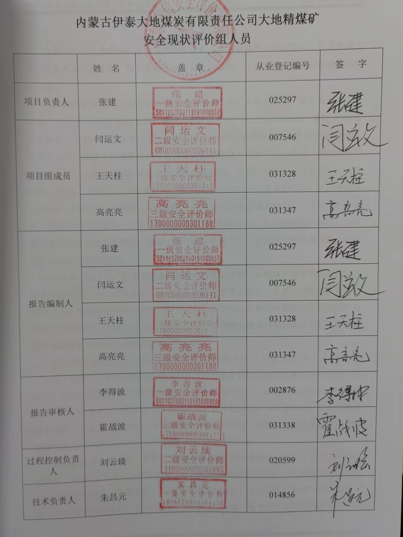 評價項目名稱 | 內(nèi)蒙古伊泰大地煤炭有限公司大地精煤礦安全現(xiàn)狀評價報告 | ||||||