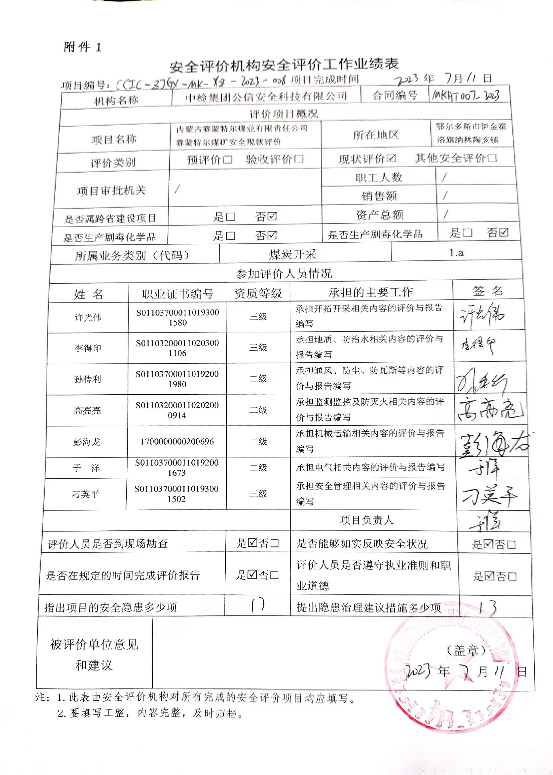 評價項(xiàng)目名稱 | 內(nèi)蒙古賽蒙特爾煤業(yè)有限責(zé)任公司賽蒙特爾煤礦安全現(xiàn)狀評價 | ||||||
