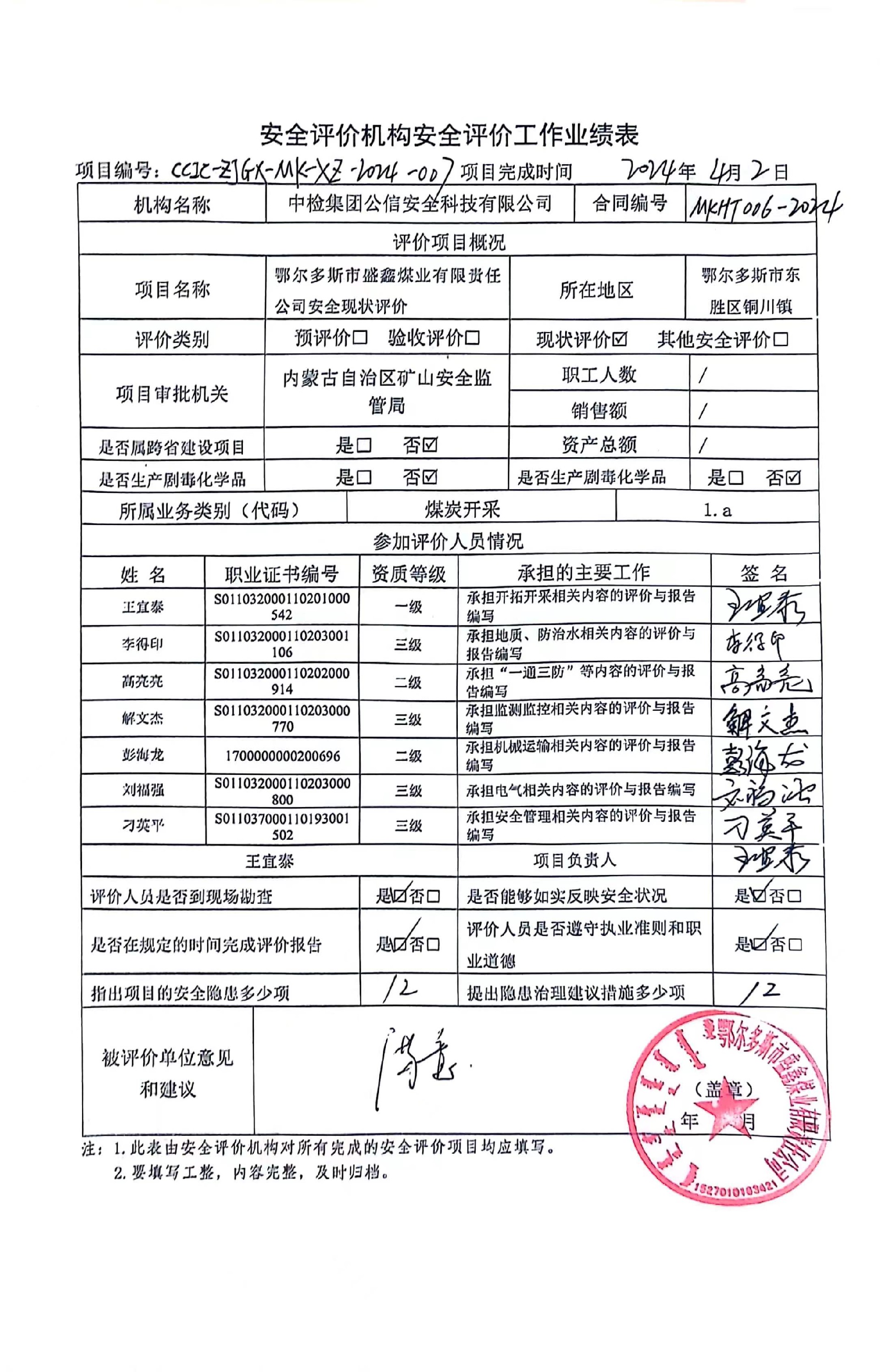 評價項目名稱 | 鄂爾多斯市盛鑫煤業(yè)有限責(zé)任公司安全現(xiàn)狀評價報告 | ||||||
