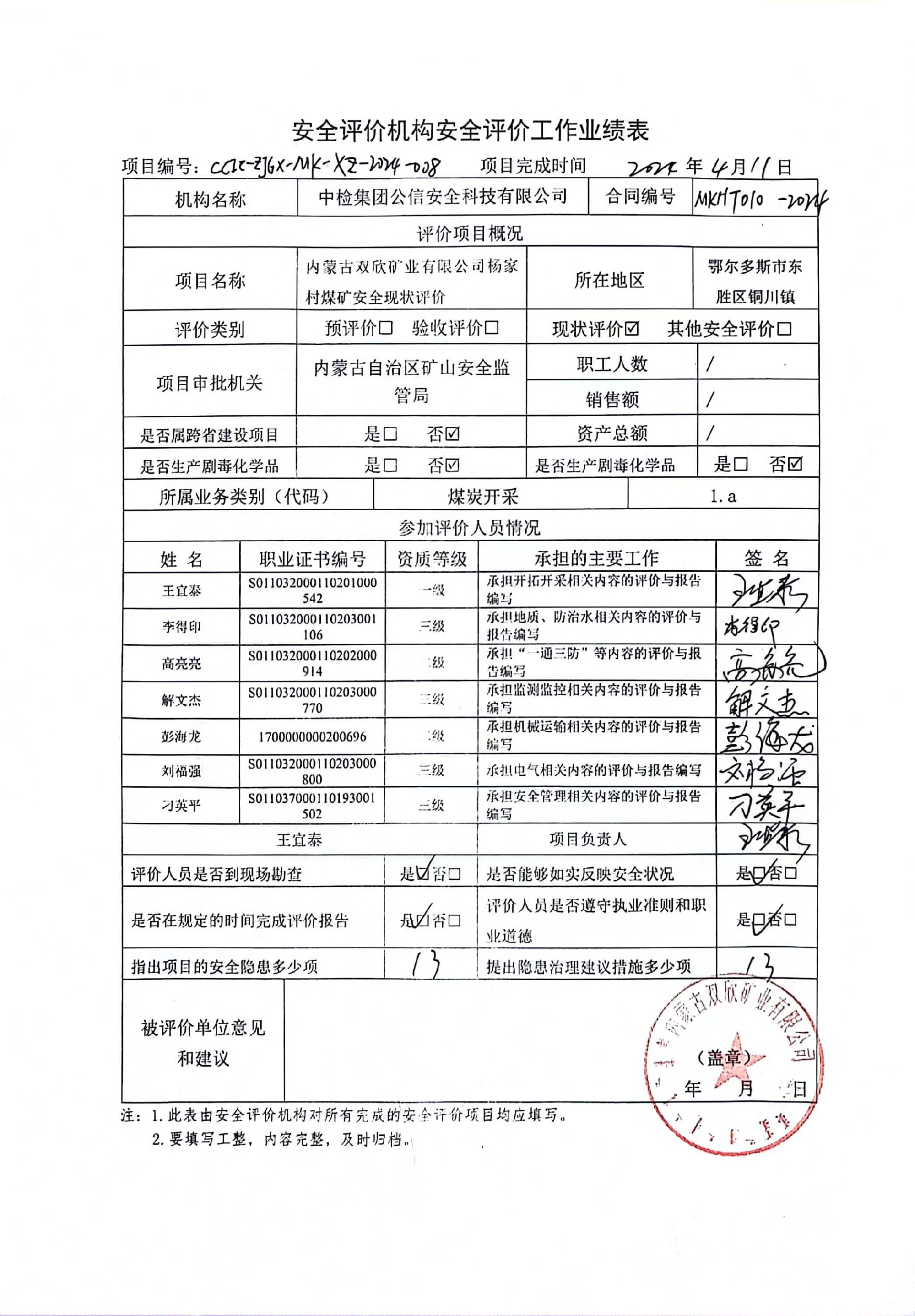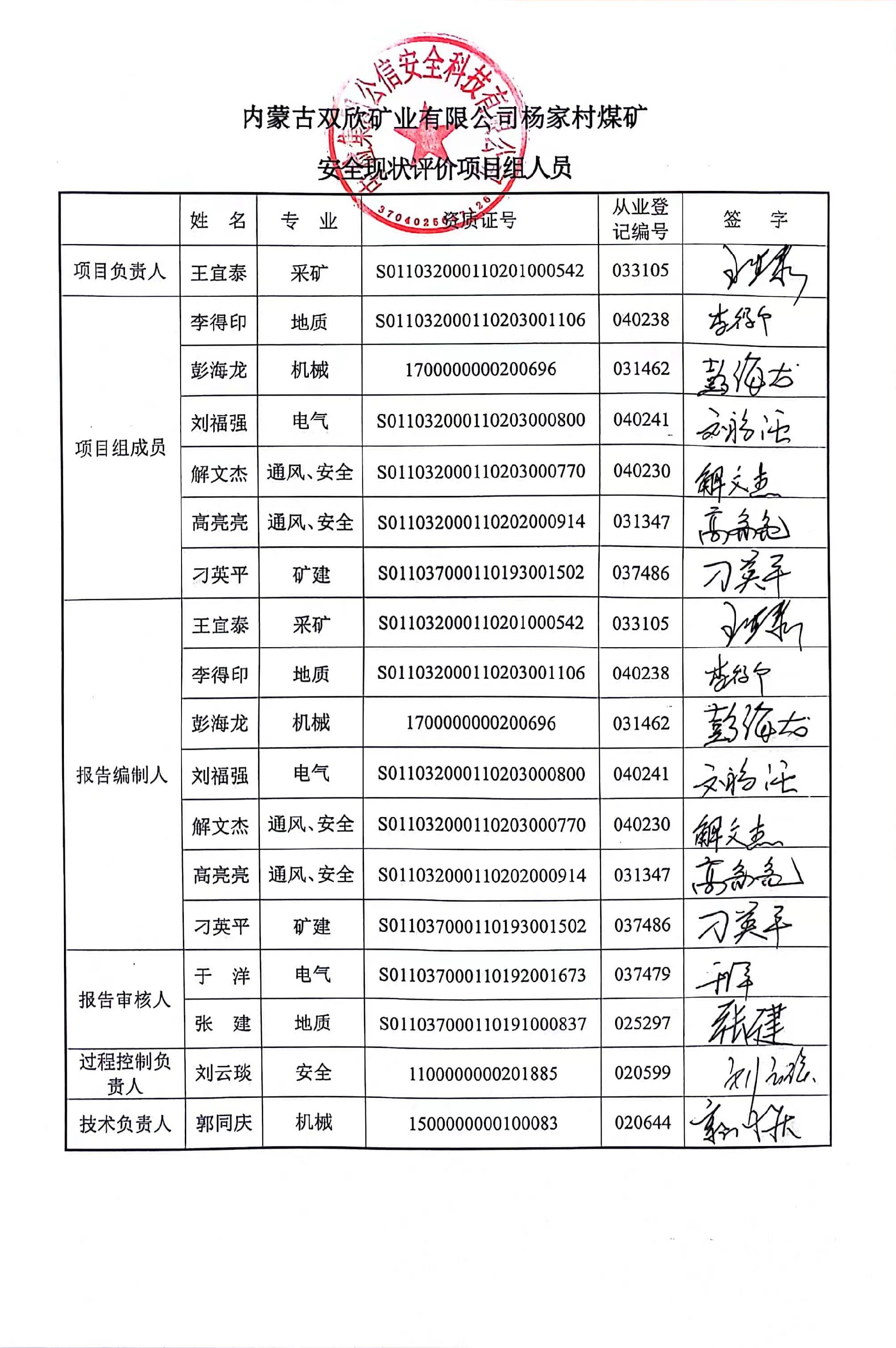 評價項目名稱 | 內(nèi)蒙古雙欣礦業(yè)有限公司楊家村煤礦安全現(xiàn)狀評價報告 | ||||||