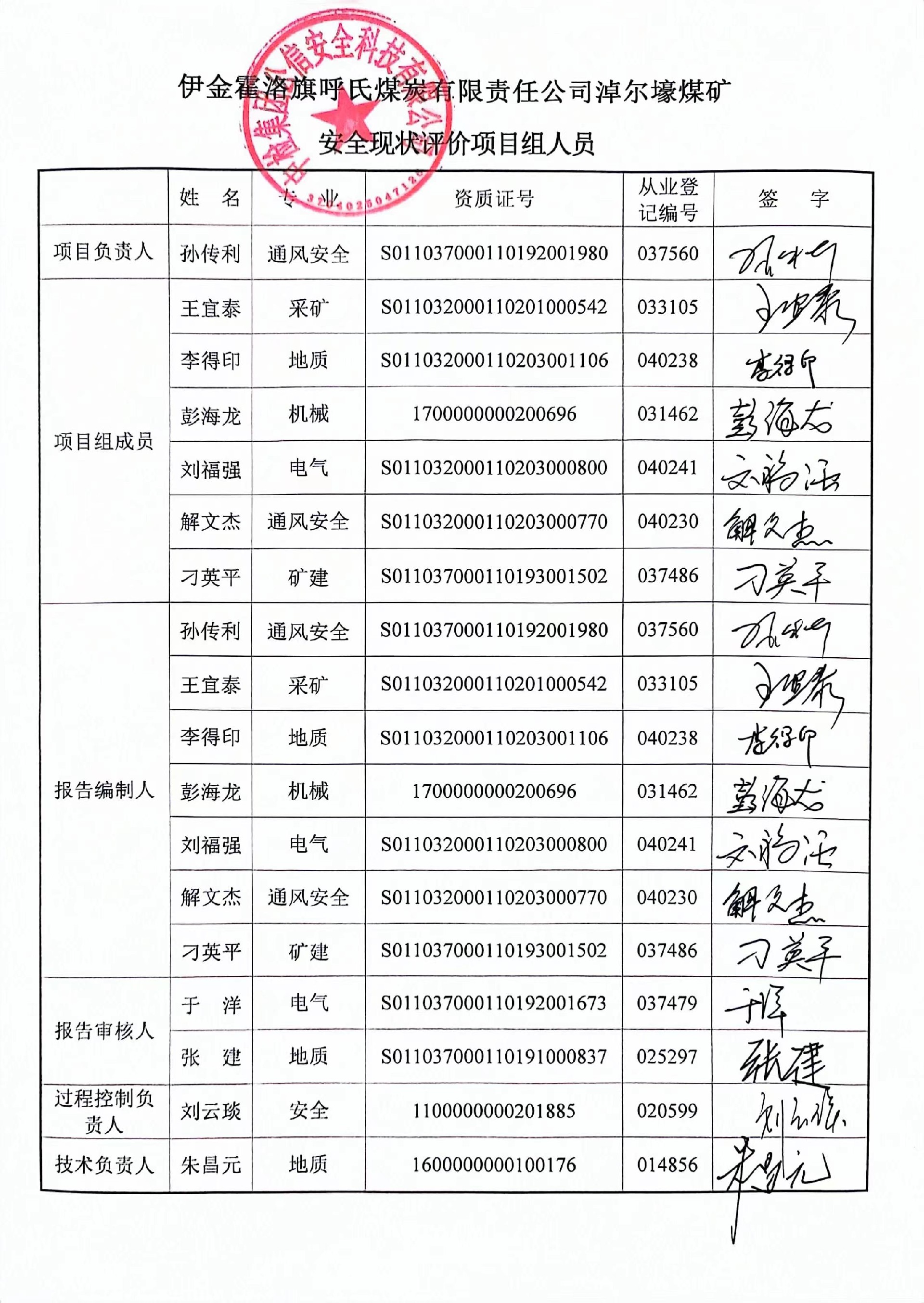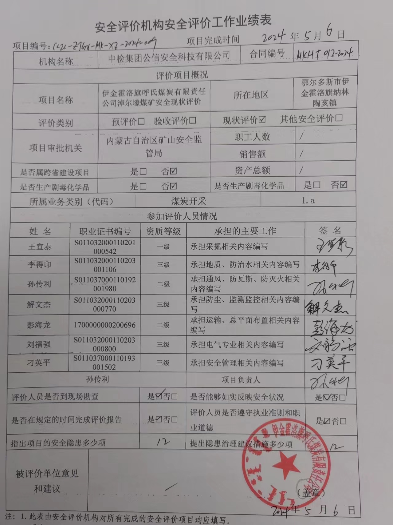 評價項目名稱 | 伊金霍洛旗呼氏煤炭有限責(zé)任公司淖爾壕煤礦安全現(xiàn)狀評價 | ||||||