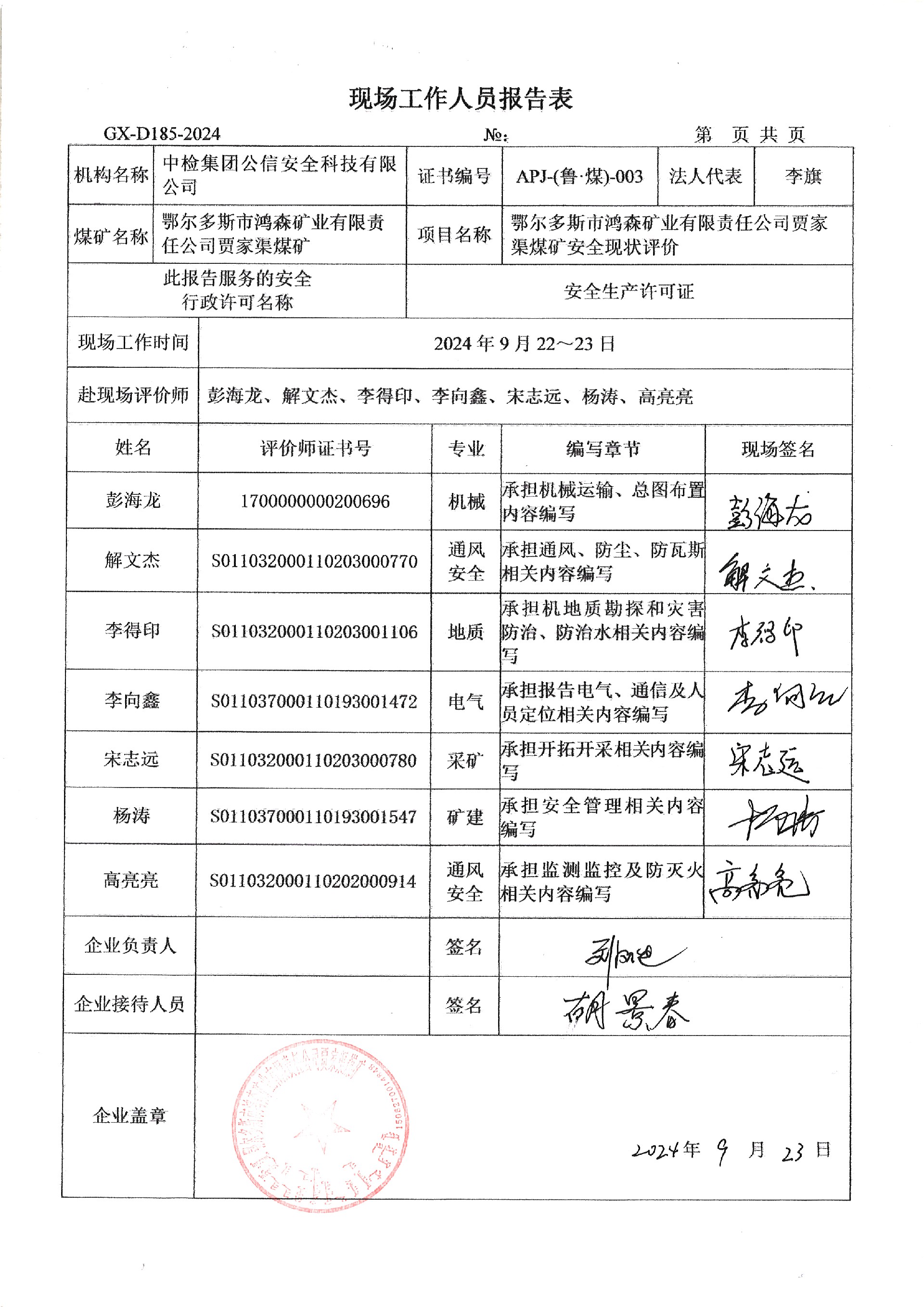 評價項目名稱 | 鄂爾多斯市鴻森礦業(yè)有限責任公司賈家渠煤礦安全現(xiàn)狀評價報告 | ||||||