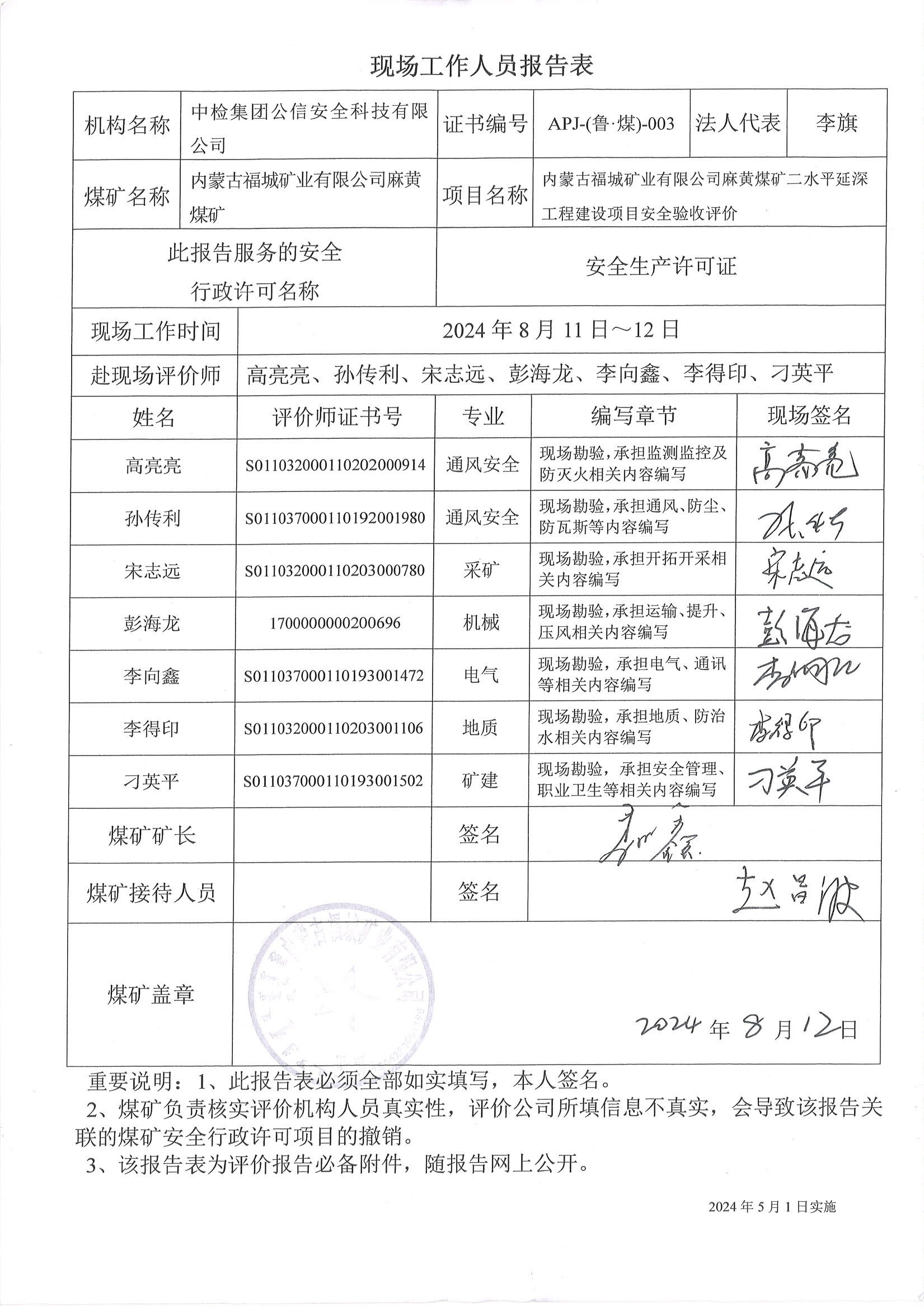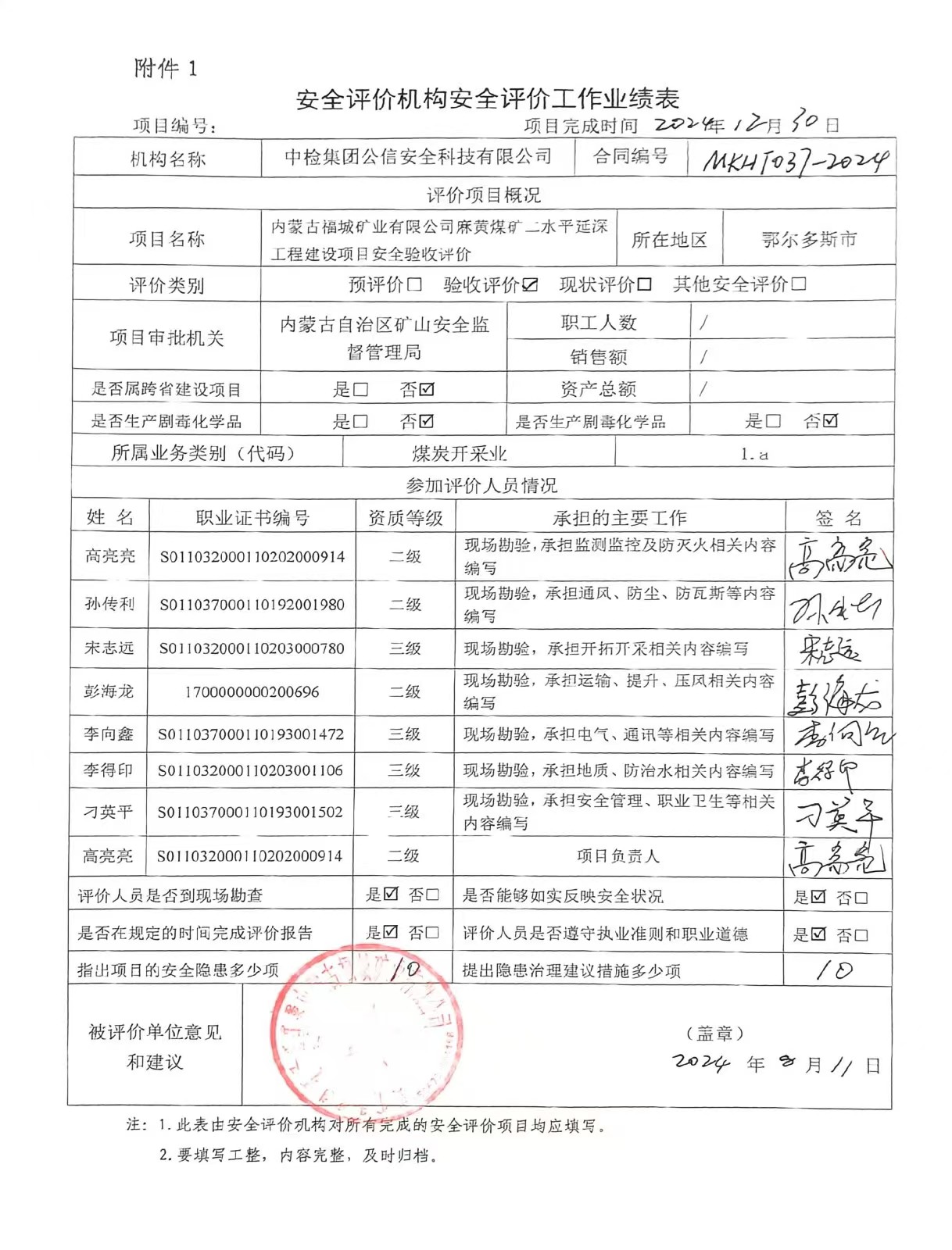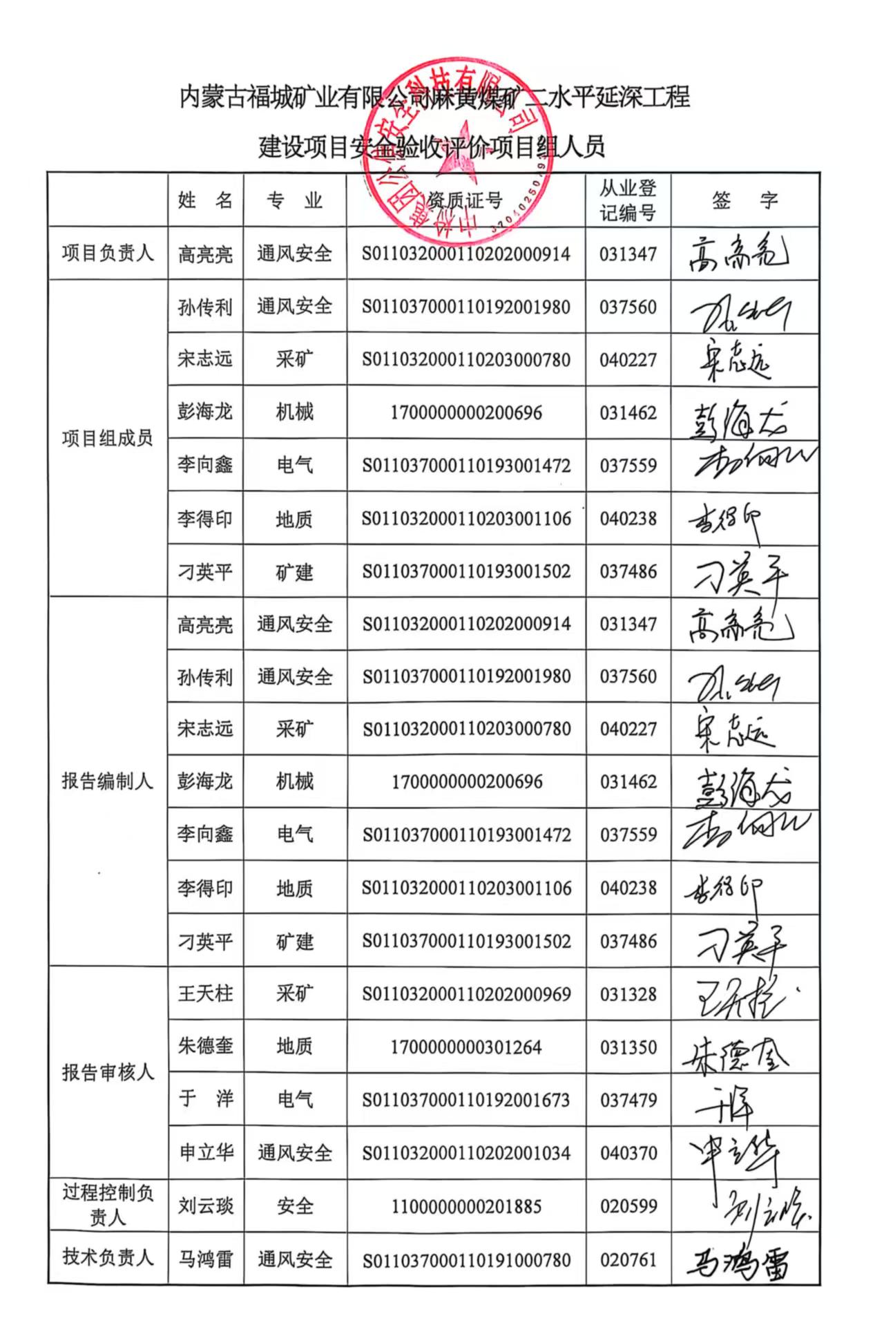 評價項目名稱 | 內(nèi)蒙古福城礦業(yè)有限公司麻黃煤礦二水平延深工程建設(shè)項目安全驗收評價 | ||||||