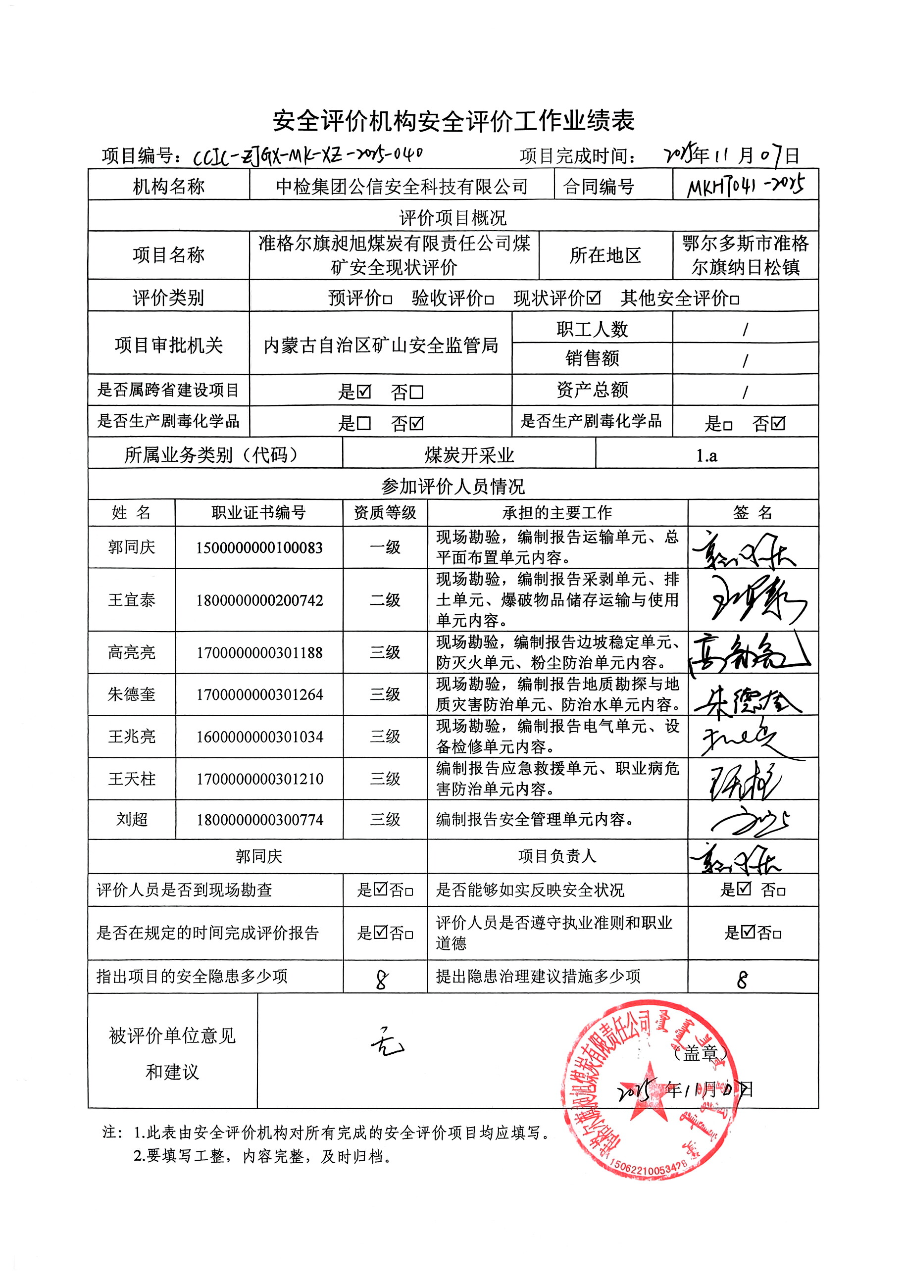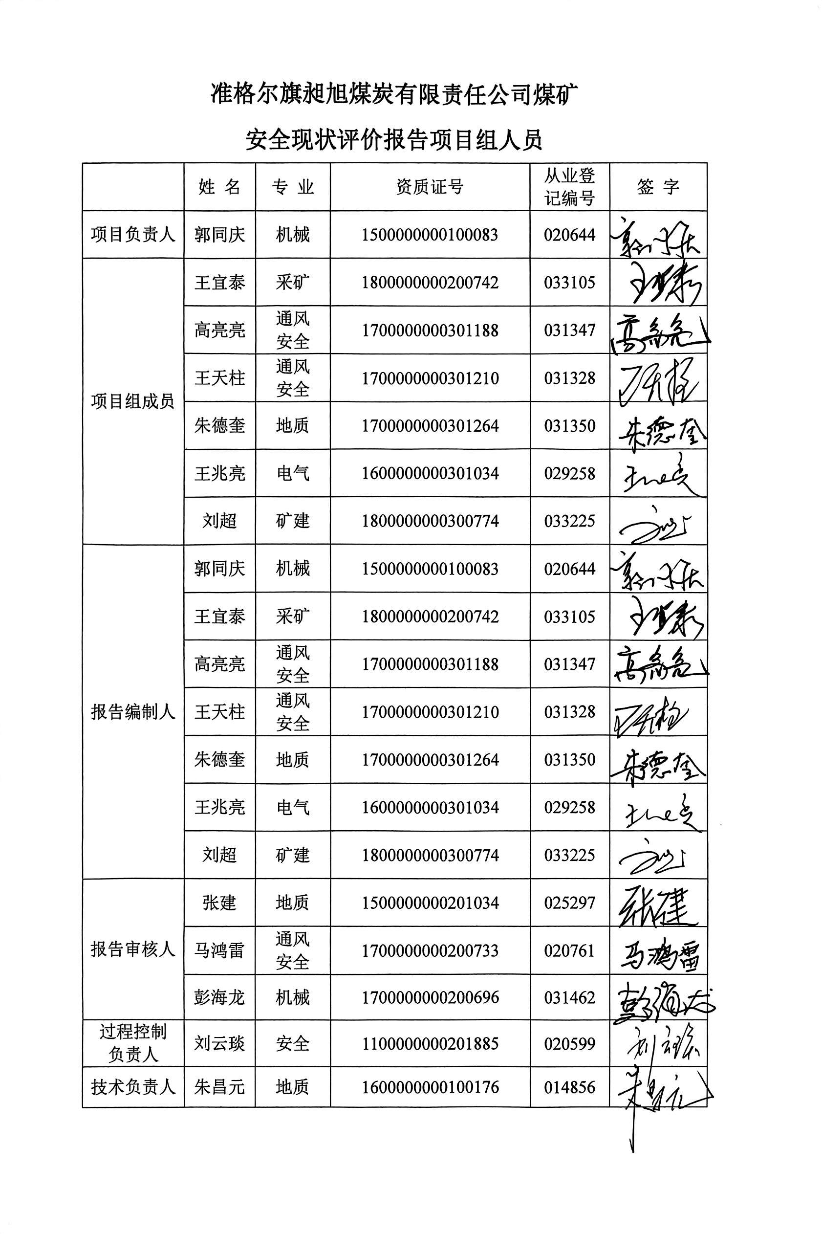 評價項目名稱 | 準格爾旗昶旭煤炭有限責任公司煤礦安全現(xiàn)狀評價報告 | ||||||