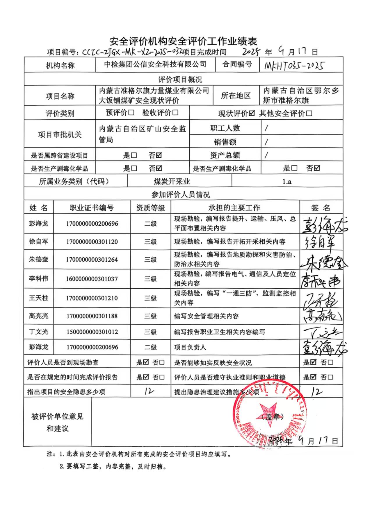 評(píng)價(jià)項(xiàng)目名稱 | 內(nèi)蒙古準(zhǔn)格爾旗力量煤業(yè)有限公司大飯鋪煤礦安全現(xiàn)狀評(píng)價(jià)報(bào)告 | ||||||