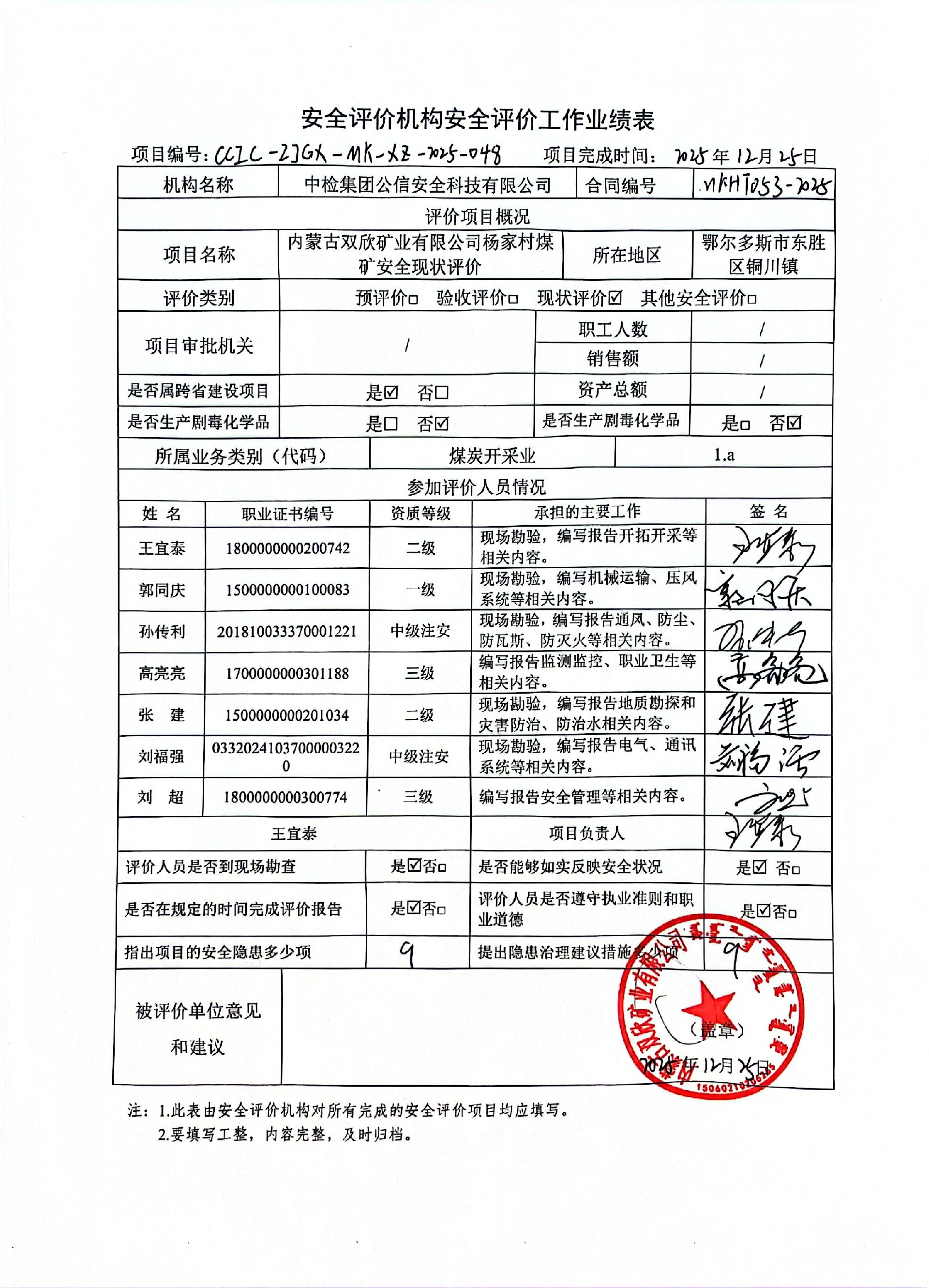赴現(xiàn)場(chǎng)的評(píng)價(jià)師: 王宜泰、郭同慶、張建、孫傳利、高亮亮 | ||||||