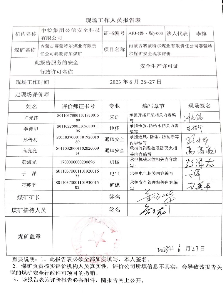 2023年3.2內(nèi)蒙古賽蒙特爾煤業(yè)有限責(zé)任公司賽蒙特爾煤礦安全現(xiàn)狀評價