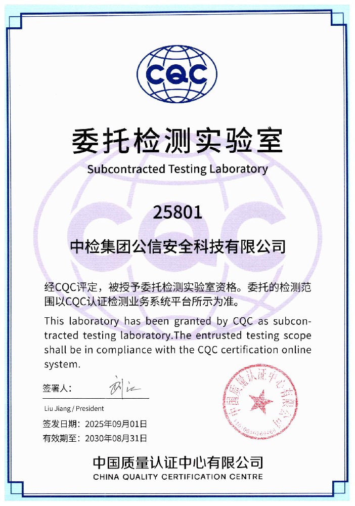 機構(gòu)名稱:中檢集團公信安全科技有限公司證書編號:370020242110058 有效期至:2029年6月18日