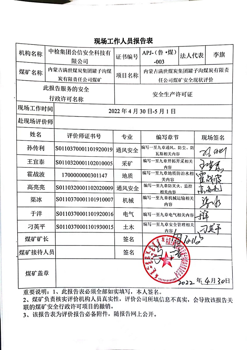 安全評(píng)價(jià)報(bào)告網(wǎng)上公開(kāi)信息表 季度: 二季度 評(píng)價(jià)項(xiàng)目名稱(chēng) 內(nèi)蒙古滿(mǎn)世煤炭集團(tuán)罐子溝煤炭有限責(zé)任公司