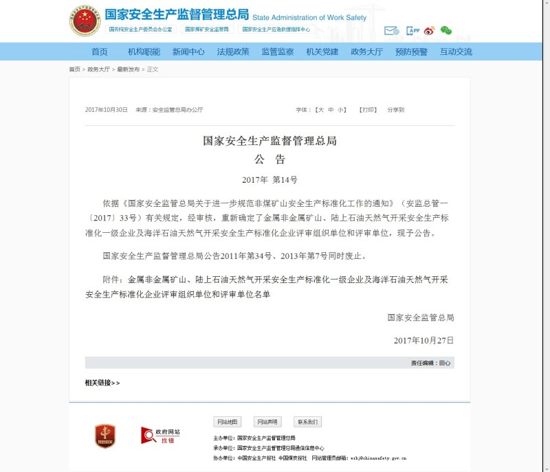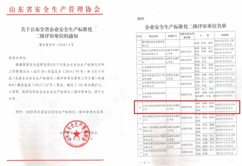 機(jī)構(gòu)名稱:山東公信安全評(píng)價(jià)有限公司批準(zhǔn)文件:國(guó)家安全生產(chǎn)監(jiān)督管理局 公告 2017年 第14號(hào)