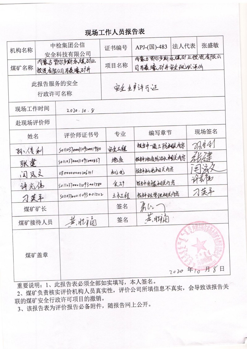 安全評(píng)價(jià)報(bào)告網(wǎng)上公開信息表 季度: 四季度 評(píng)價(jià)項(xiàng)目名稱 鄂爾多斯市伊化礦業(yè)資源有限責(zé)任公司母杜柴