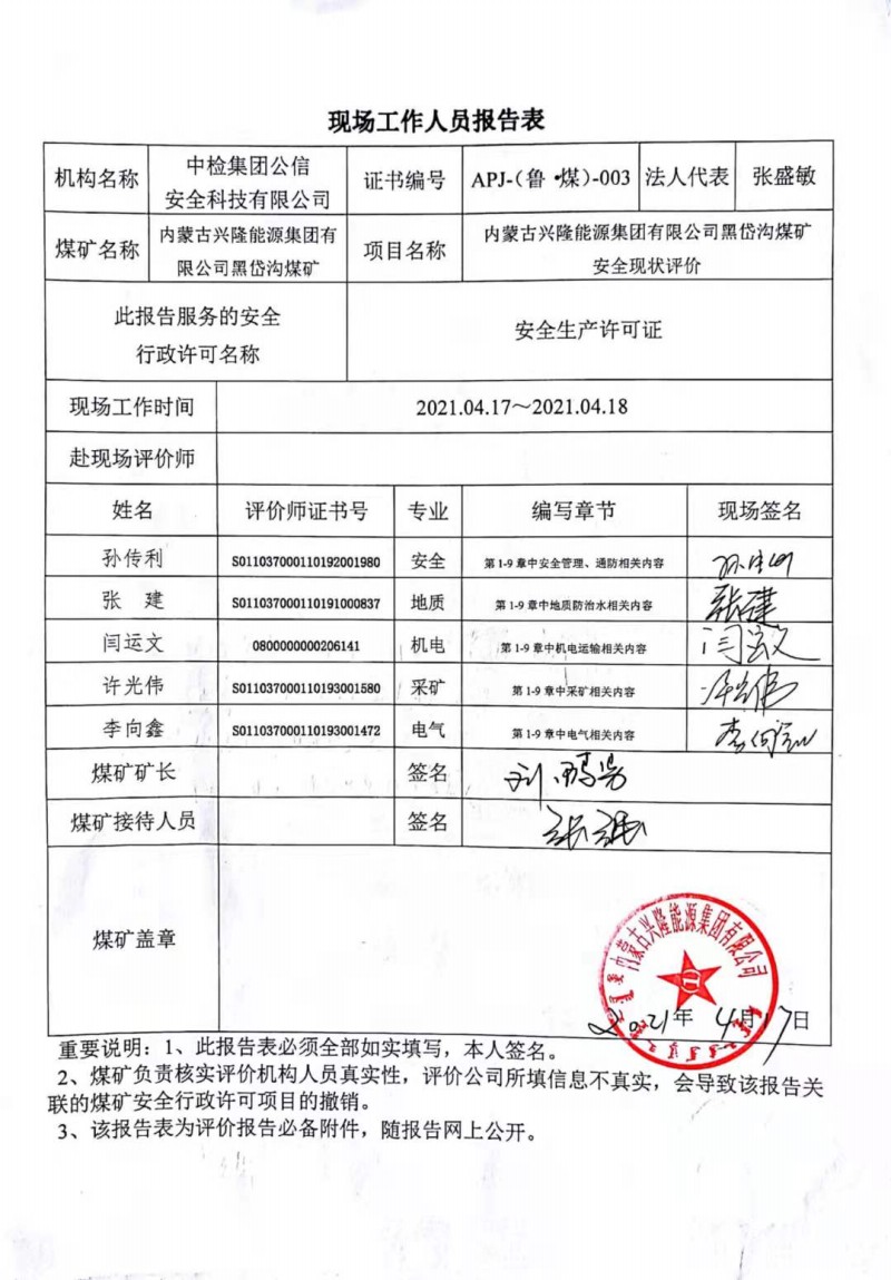 2021年第4季度1內(nèi)蒙古興隆能源集團有限公司黑岱溝煤礦安全現(xiàn)狀評價