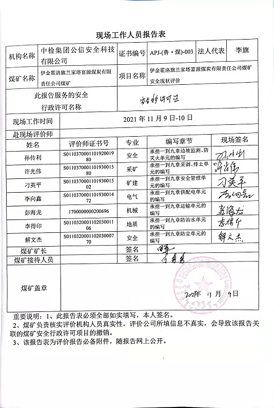2021年第4季度2伊金霍洛旗蘭家塔富源煤炭有限責(zé)任公司煤礦安全現(xiàn)狀評價報告