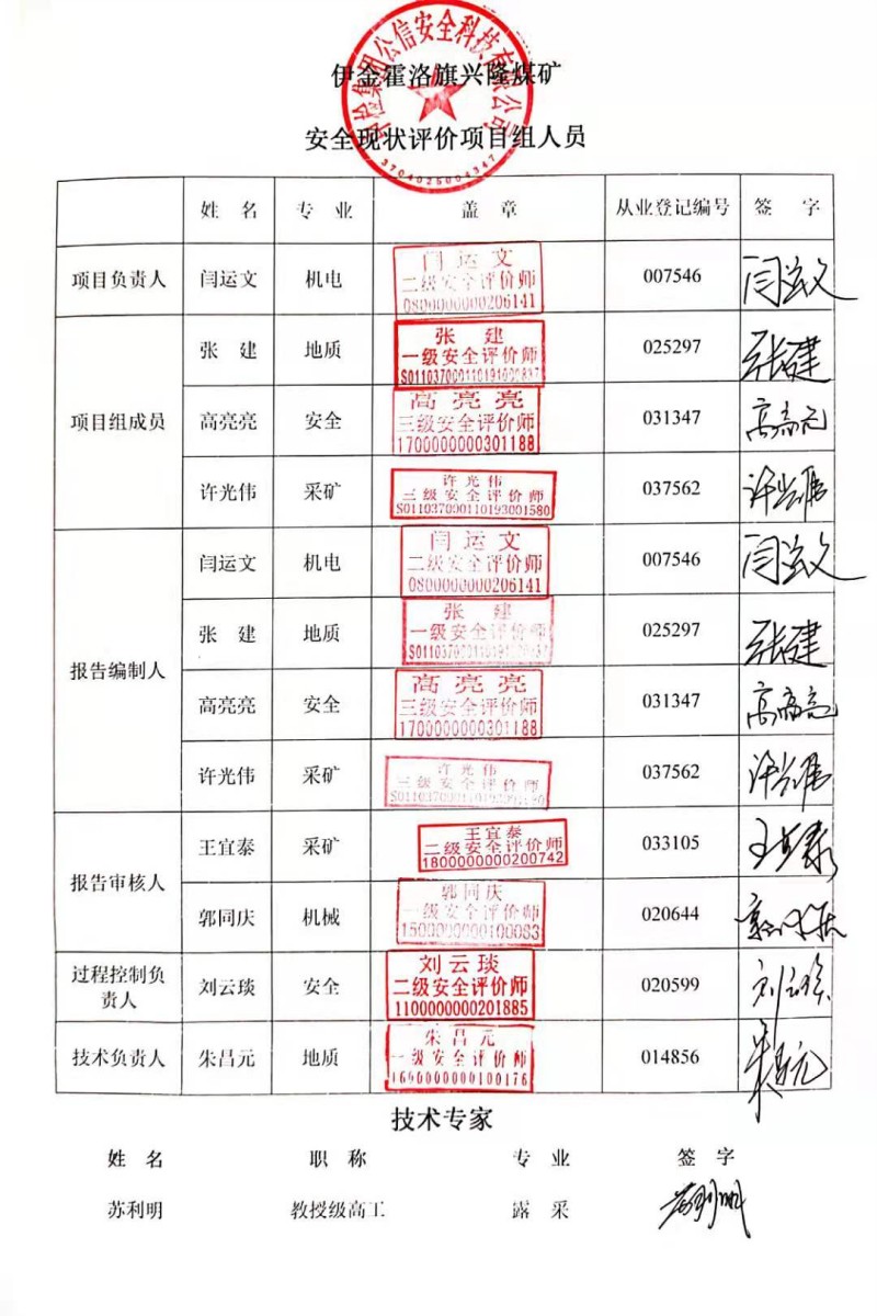 | 參與安全評(píng)價(jià)工作的注冊(cè)安全工程師: 閆運(yùn)文 高亮亮 |