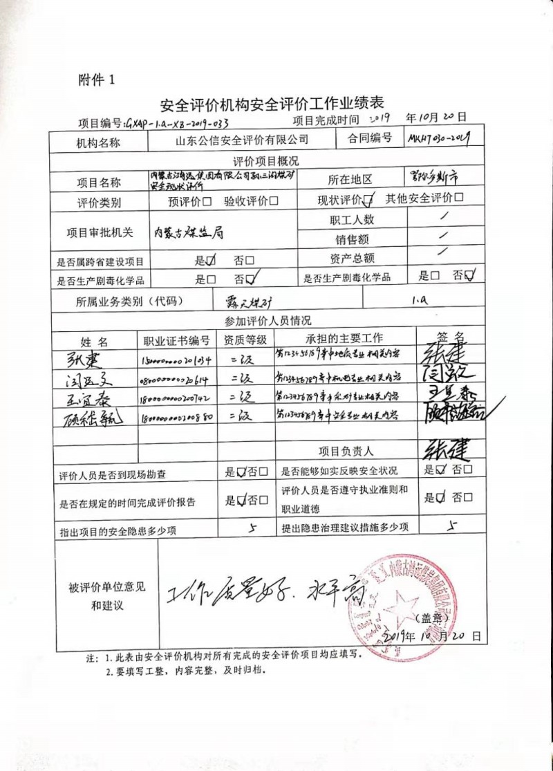 | 現(xiàn)場(chǎng)開展安全評(píng)價(jià)工作的人員、時(shí)間及主要任務(wù): 張建 閆云文 王宜泰 顧嵇毓 于2019年6月24日到現(xiàn)場(chǎng)進(jìn)行調(diào)查、搜集資料,進(jìn)行現(xiàn)場(chǎng)評(píng)價(jià)。 于2019年7月27日到現(xiàn)場(chǎng)評(píng)價(jià)時(shí)存在的問題進(jìn)行了復(fù)查。 |