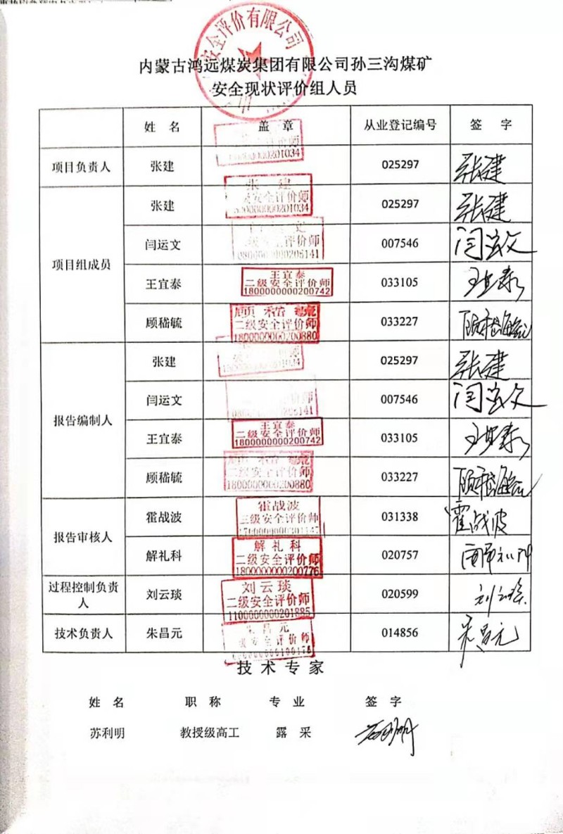 | 參與安全評(píng)價(jià)的技術(shù)專家:蘇利明 | |||||||