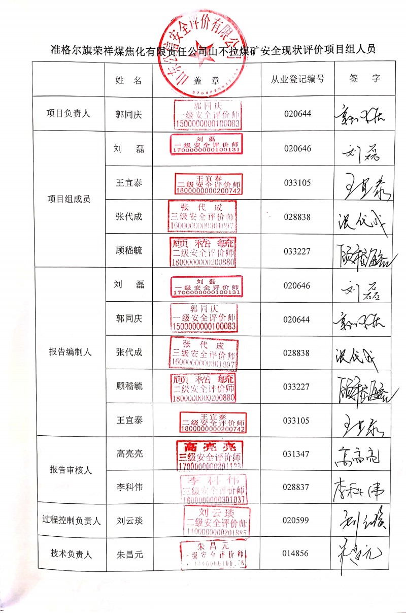 | 參與安全評(píng)價(jià)工作的安全評(píng)價(jià)師: 郭同慶、劉磊、張代成、王宜泰、顧嵇毓 |