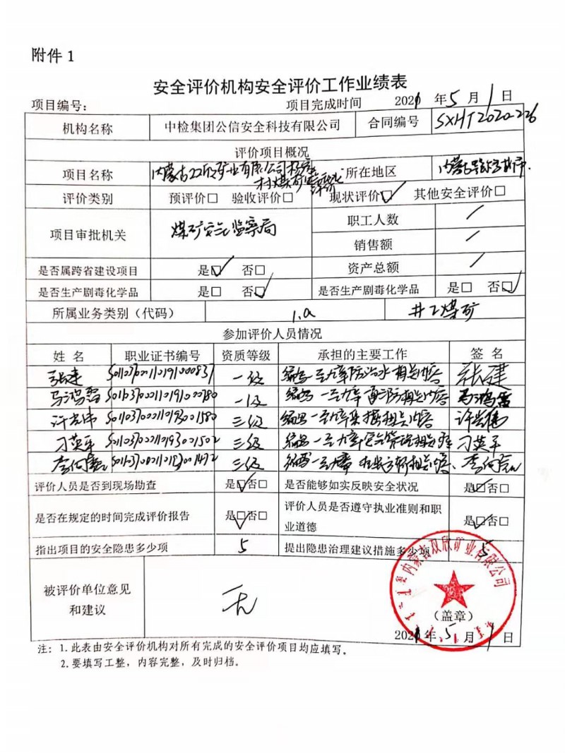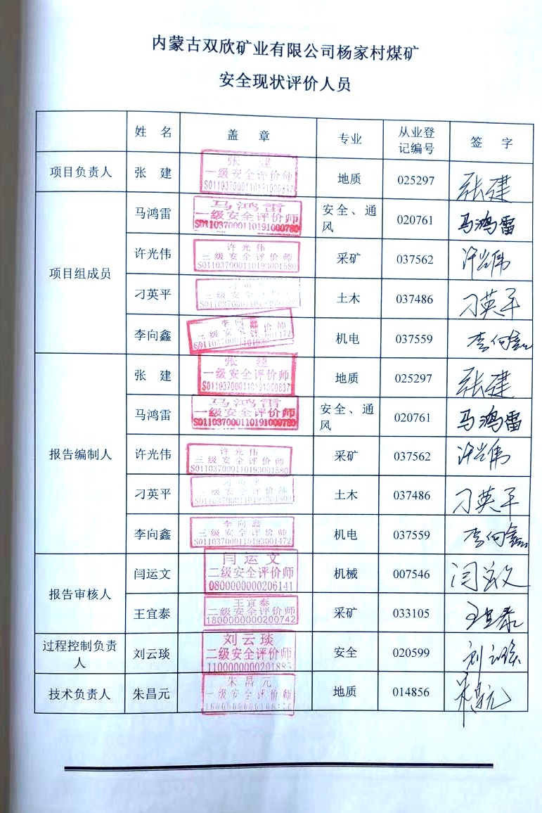 | 評價項目名稱 | 內(nèi)蒙古雙欣礦業(yè)有限公司楊家村煤礦 安全現(xiàn)狀評價報告 |