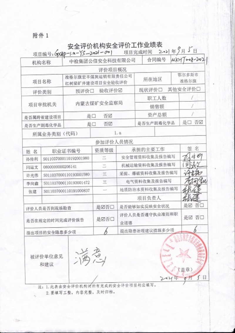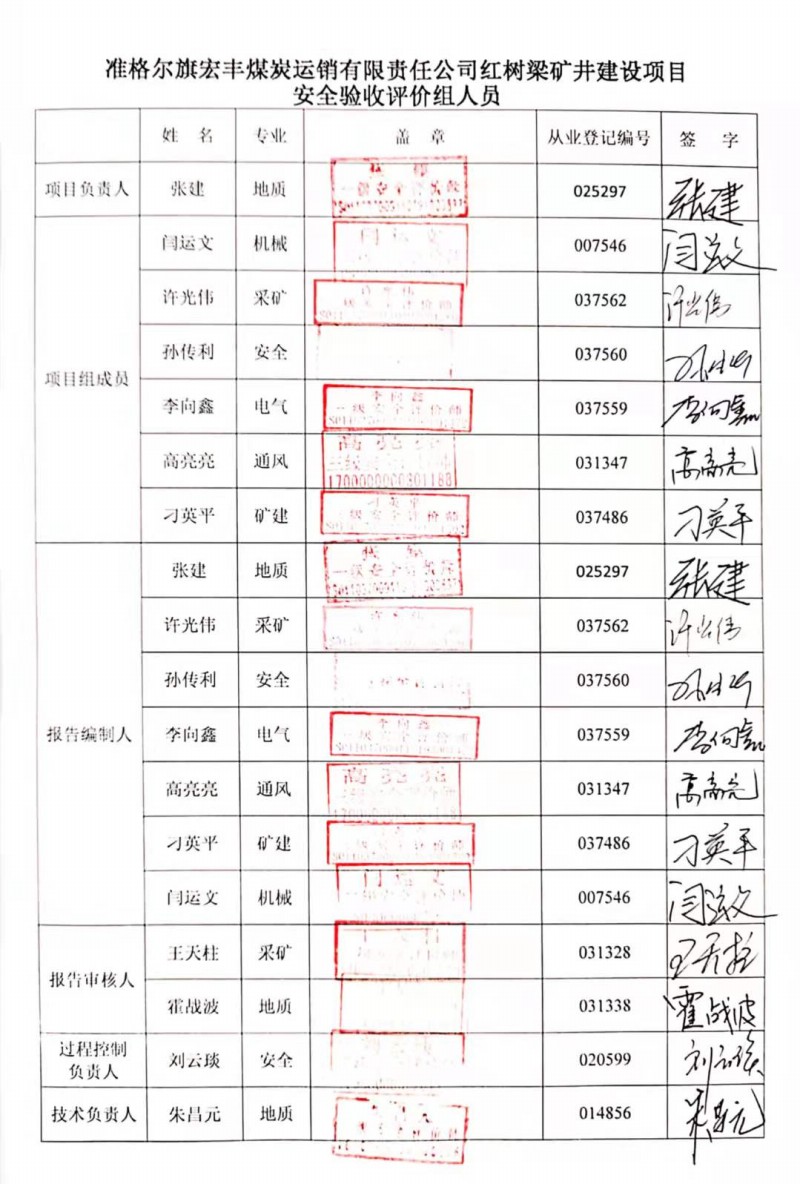 | 評價項目名稱 | 準格爾旗宏豐煤炭運銷有限責任公司紅樹梁礦井建設項目安全驗收評價報告 | ||||||
