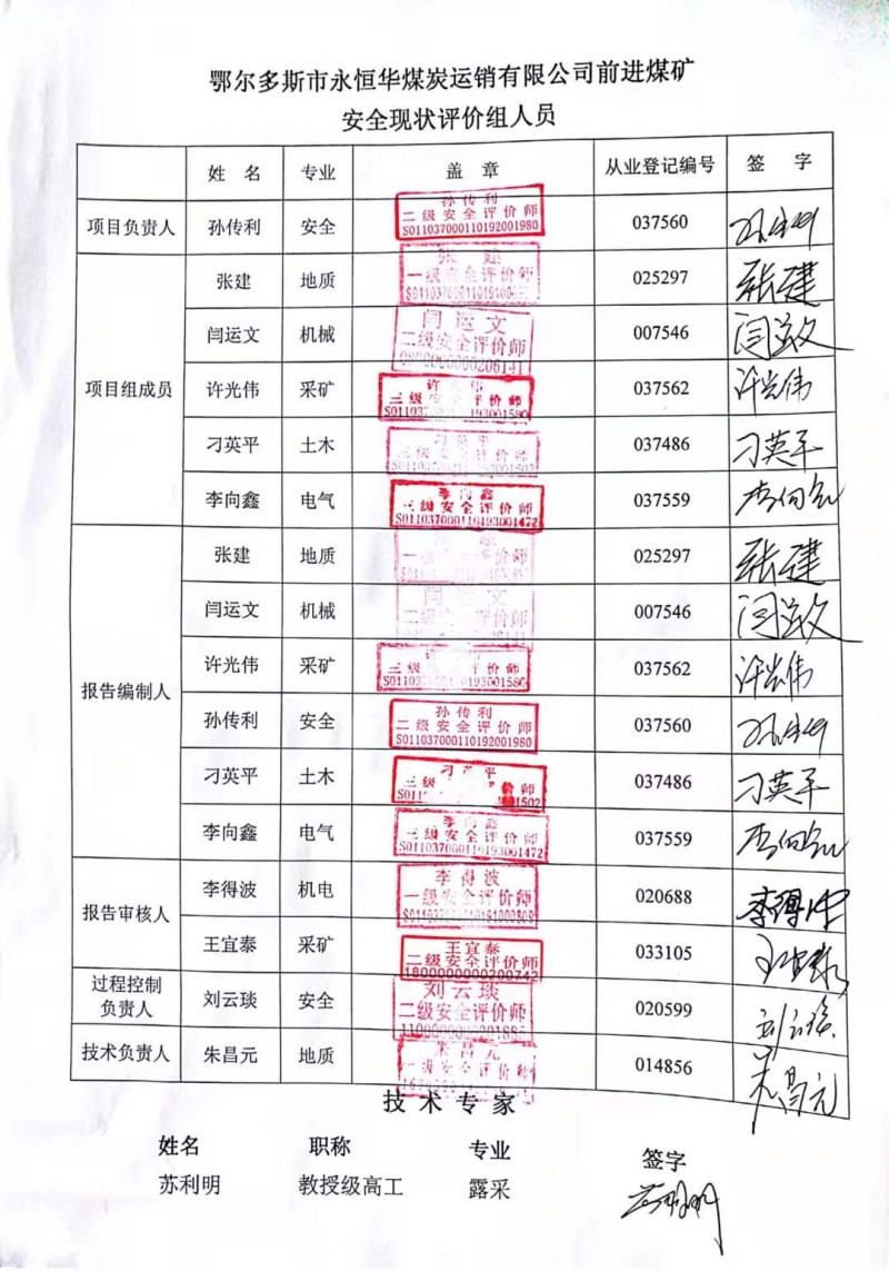 | 參與安全評(píng)價(jià)的技術(shù)專家:蘇利明 | |||||||