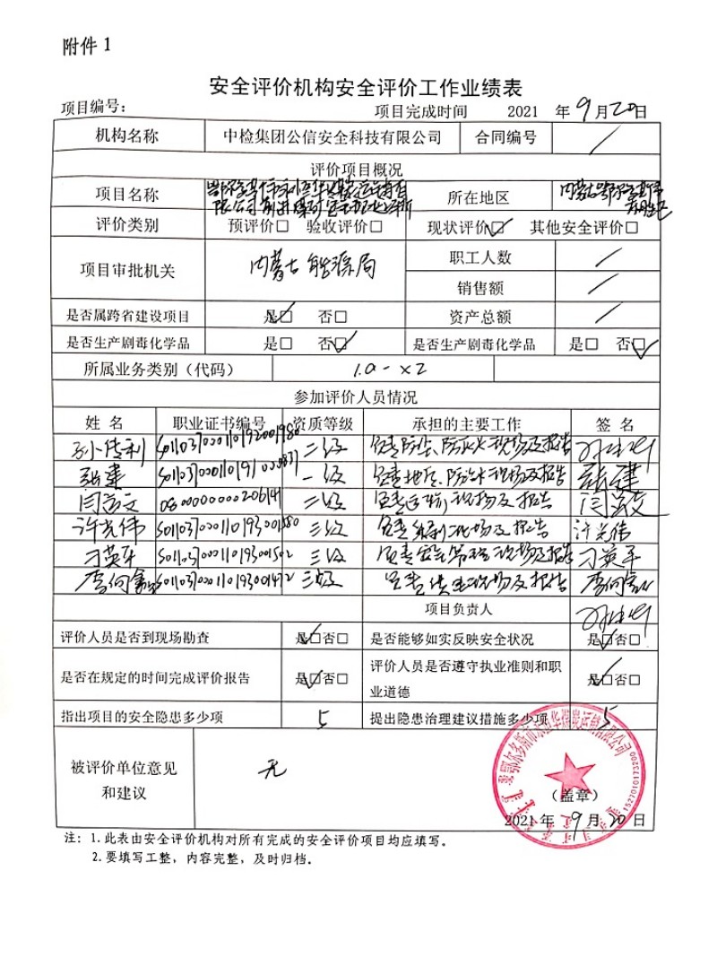 | 現(xiàn)場(chǎng)開(kāi)展安全評(píng)價(jià)工作的人員、時(shí)間及主要任務(wù): 張 建 孫傳利 閆運(yùn)文 許光偉 刁英平 李向鑫 于2021年7月11日-12日到現(xiàn)場(chǎng)進(jìn)行調(diào)查、搜集資料,進(jìn)行現(xiàn)場(chǎng)評(píng)價(jià)。 于2021年8月11日到現(xiàn)場(chǎng)評(píng)價(jià)時(shí)存在的問(wèn)題進(jìn)行了復(fù)查。 |