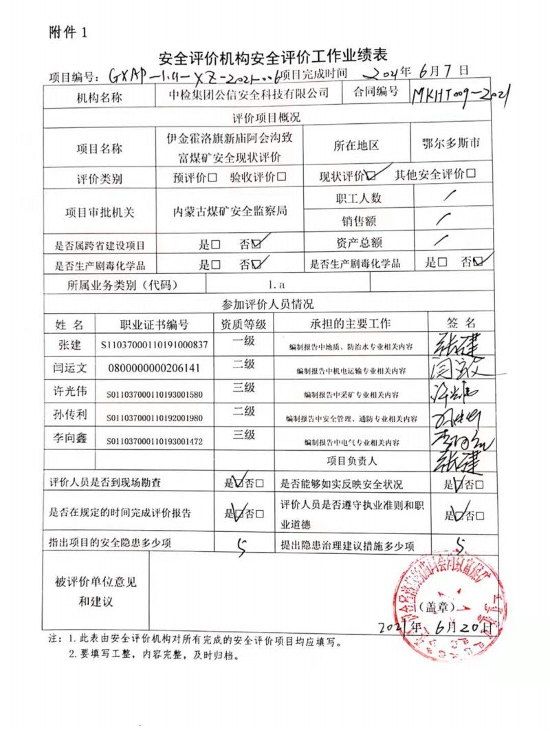 | 評(píng)價(jià)項(xiàng)目名稱 | 伊金霍洛旗新廟阿會(huì)溝致富煤礦安全現(xiàn)狀評(píng)價(jià) | ||||||
