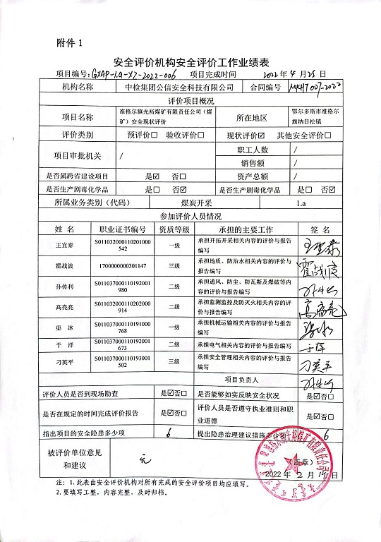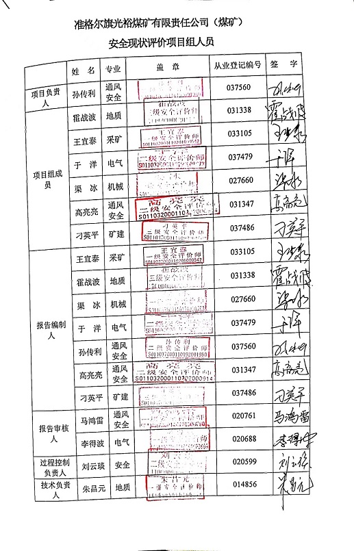| 評價項目名稱 | 準格爾旗光裕煤礦有限責任公司(煤礦)安全現(xiàn)狀評價報告 | ||||||