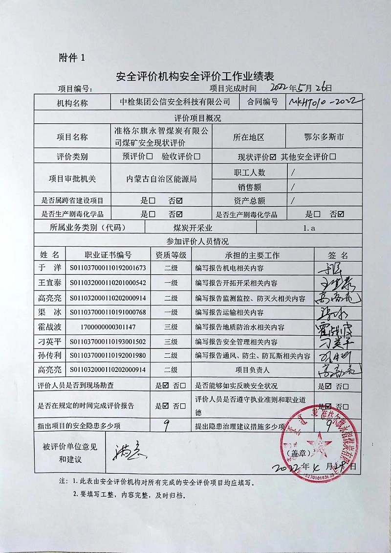 | 評(píng)價(jià)項(xiàng)目名稱(chēng) | 準(zhǔn)格爾旗永智煤炭有限公司煤礦安全現(xiàn)狀評(píng)價(jià)報(bào)告 | ||||||