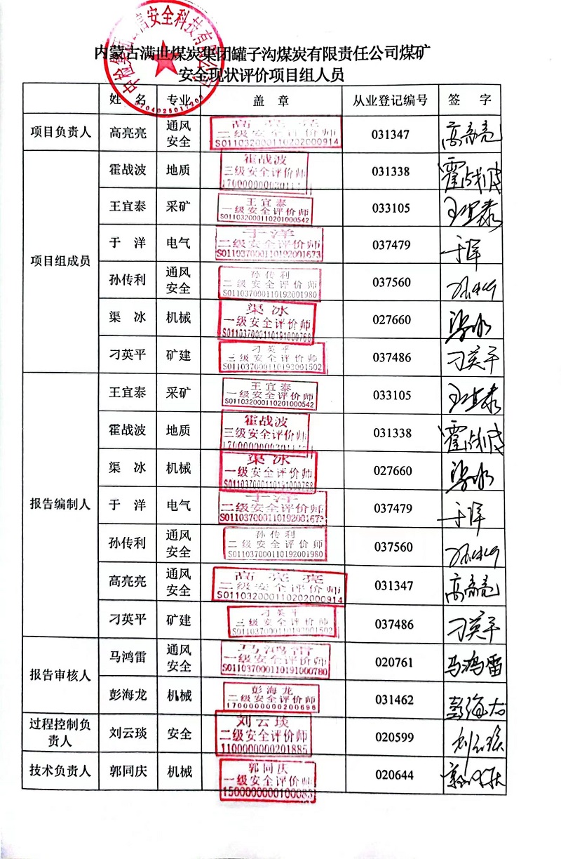 | 評(píng)價(jià)項(xiàng)目名稱 | 內(nèi)蒙古滿世煤炭集團(tuán)罐子溝煤炭有限責(zé)任公司煤礦安全現(xiàn)狀評(píng)價(jià)報(bào)告 | ||||||