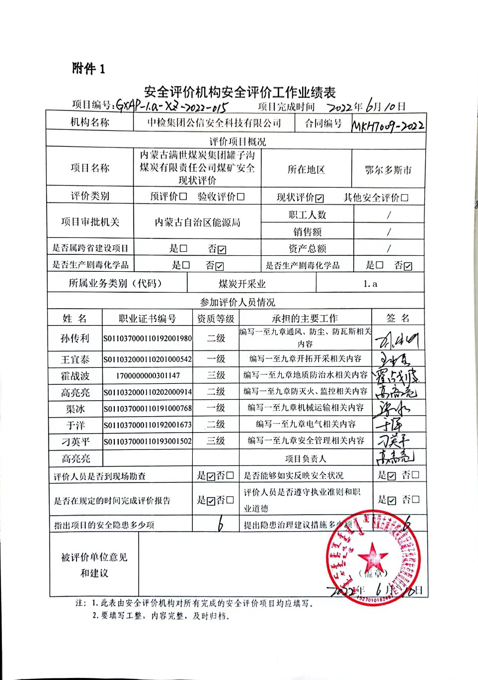 | 到現(xiàn)場(chǎng)開展安全評(píng)價(jià)工作的人員、時(shí)間及主要任務(wù): 人員:高亮亮、霍戰(zhàn)波、王宜泰、于洋、渠冰、刁英平、孫傳利 時(shí)間、任務(wù): 2022年4月30日-5月1日現(xiàn)場(chǎng)調(diào)查;2022年5月6日復(fù)查;2022年5月7日至2022年6月9日編寫修改完善報(bào)告。 |