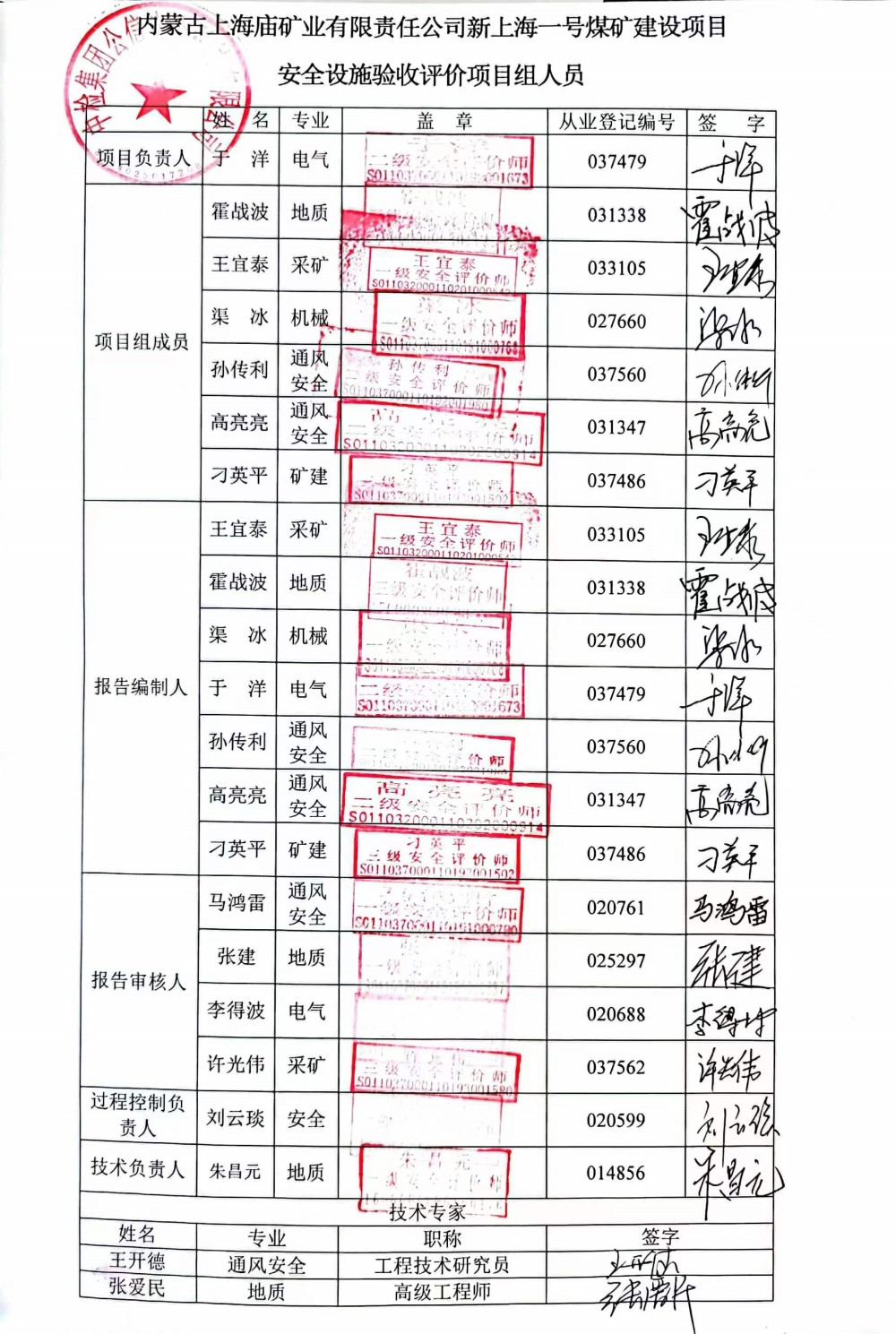 | 參與安全評(píng)價(jià)工作的注冊(cè)安全工程師: 孫傳利 王宜泰 渠冰 霍戰(zhàn)波 高亮亮 |
